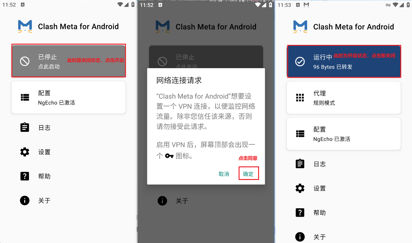 第一次使用时,会弹出提示框询问是否允许建立 VPN 链接,点击同意。