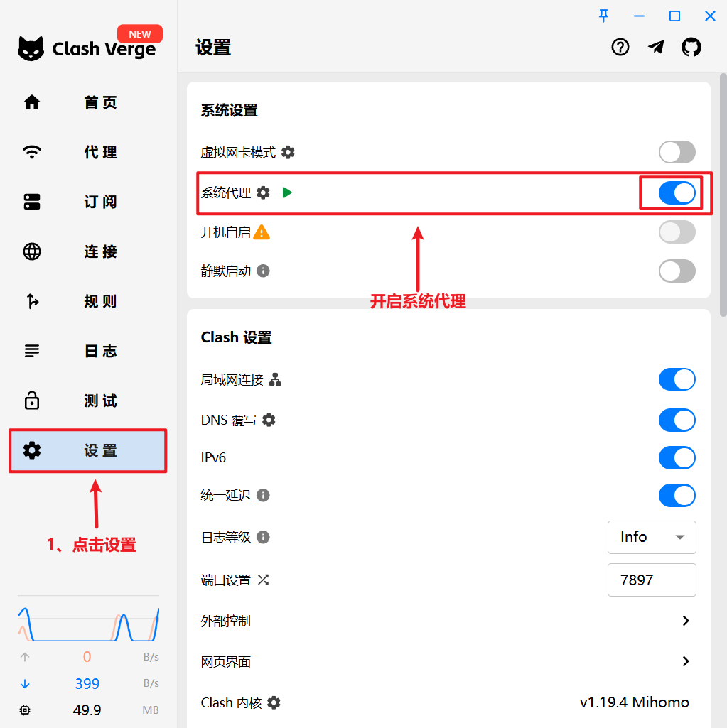 ⚠️ 注意:关闭软件前,请先关闭系统代理!